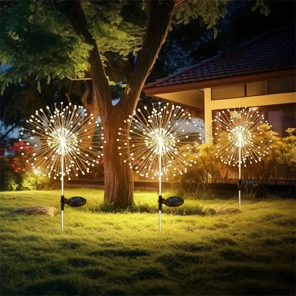 1PC 90LED/120LED/150LED IP65 Waterproof Solar Fireworks Ground Plug in Light, Used for Courtyard, Balcony, Flower Bed Decoration