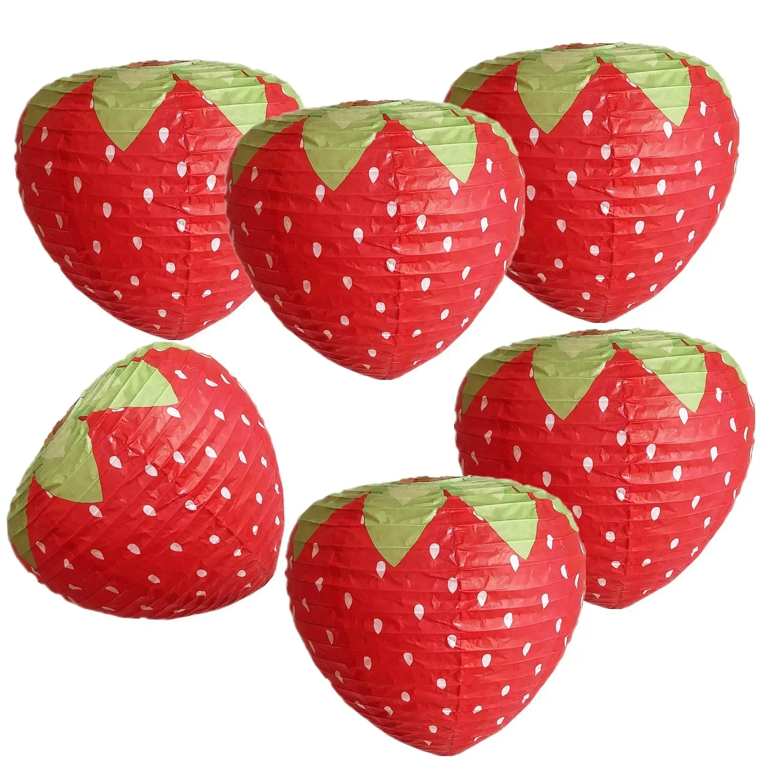 6PCS Strawberry paper lanterns DIY fruit themed birthday party lanterns foldable holiday props strawberry lights