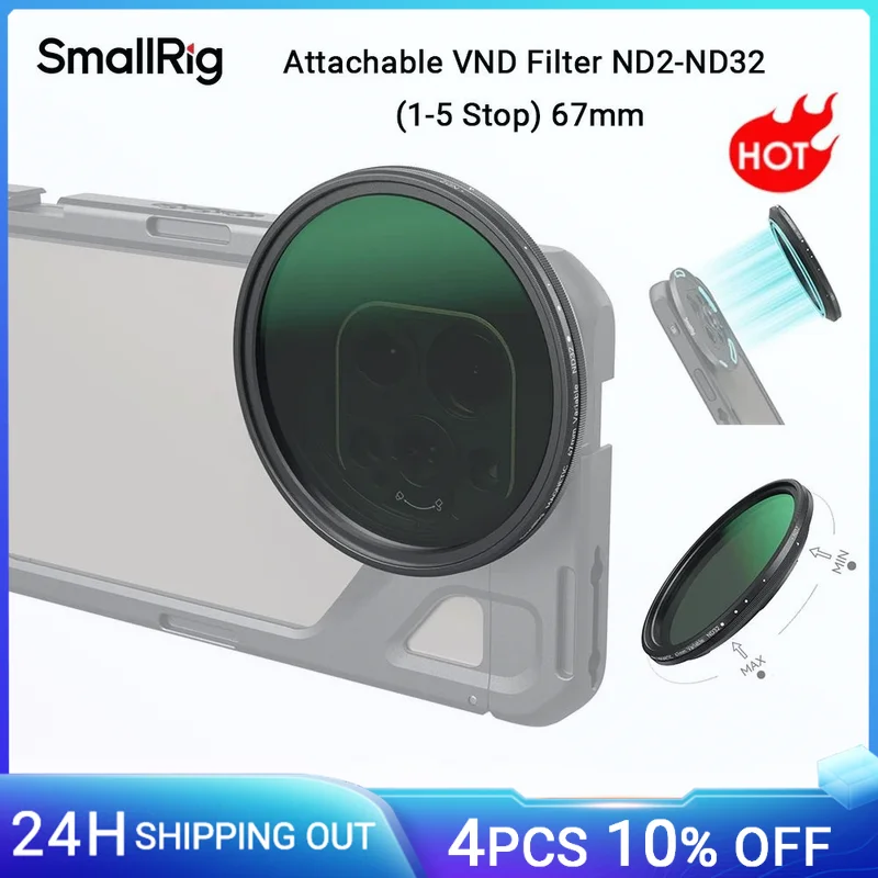 SmallRig 67mm Magnetic Attachable VND Filter ND2-ND32 (1-5 Stop) w 67mm Threaded Filter Ring for iPhone 15 Pro, S24 Ultra -4581