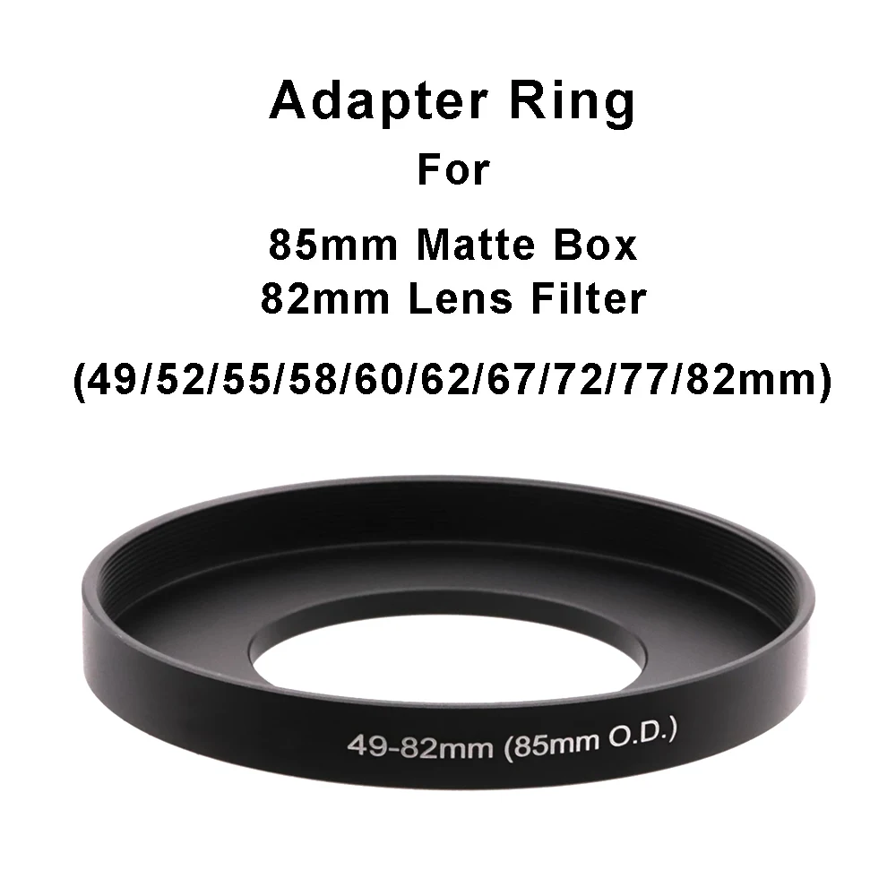 For 85mm Matte Box or 82mm Filter Matte Box Adapter Ring 49/52/55/58/60/62/67/72/77/82mm-82mm Lens Filter Step Up Ring 85mm O.D