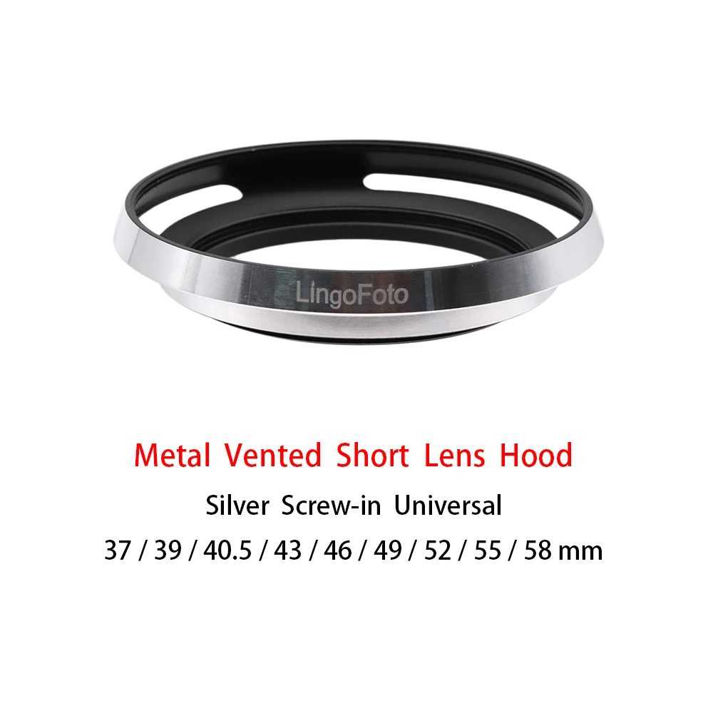 Universal Metal Screw-in Vented wide-angle Lens Hood Silver 37/39/40.5/43/46/49/52/55/58mm camera photography accessory