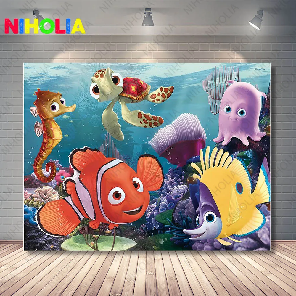 Finding Nemo Photography Backdrops Kids Birthday Photo Backdrop Clownfish Nemo or Regal Blue Tang Photo Props