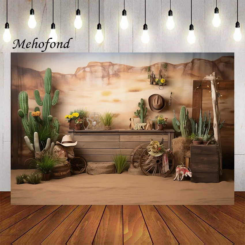 Mehofond Photography Background Mexico Desert Cactus Western Cowboy Kid Birthday Party Portrait Decoration Backdrop Photo Studio