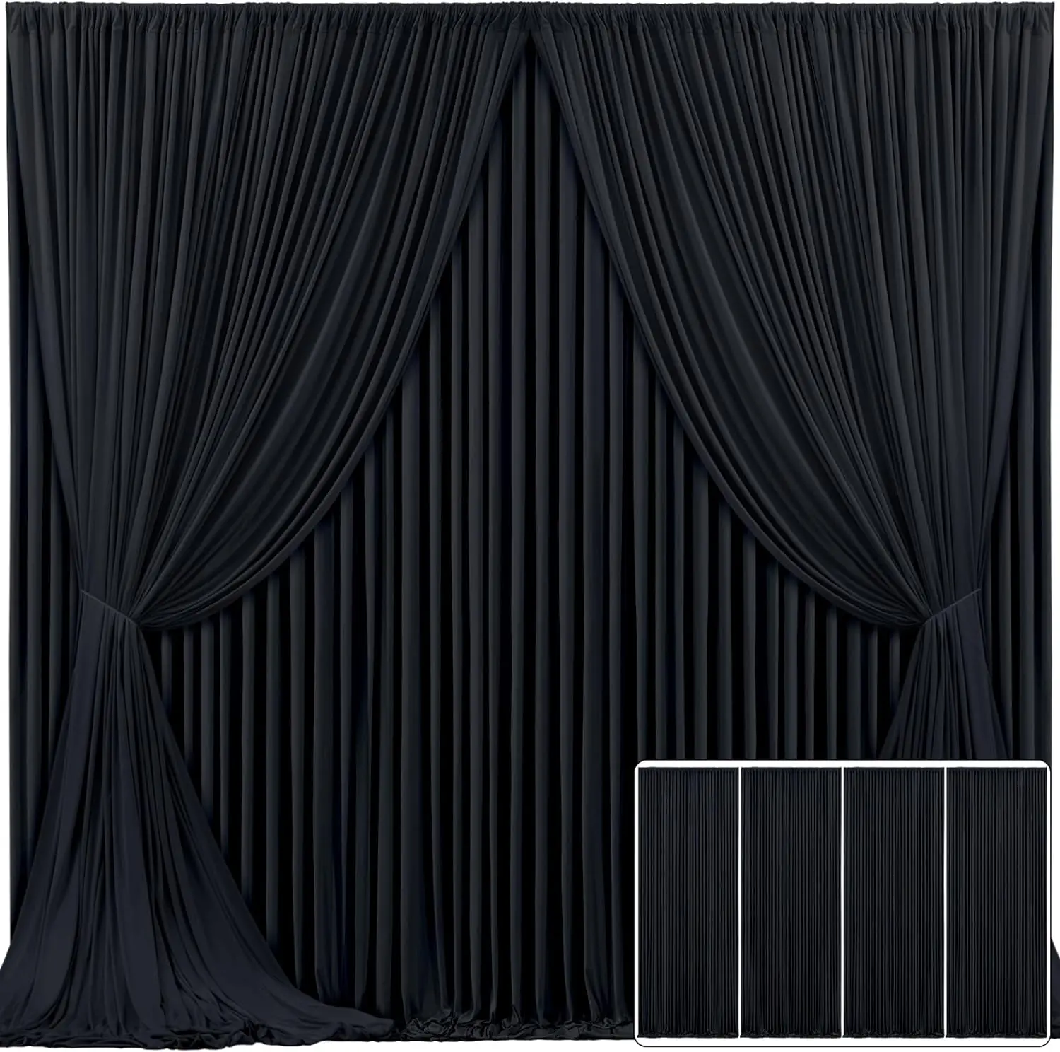 20ft×10ft Wrinkle Free Black Backdrop Curtain for Party, 4 Panels 5×10 ft Silky Polyester Photo Backdrop Drapes for Birthday Par