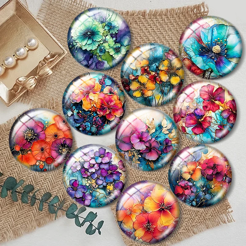 Wild Flowers Watercolor 10pcs mixed 12mm/18mm/20mm/25mm Round photo glass cabochon demo flat back Making findings