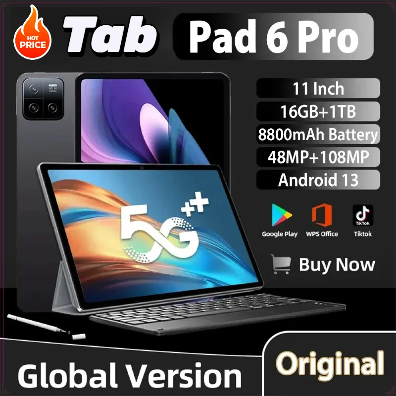 2025 New Original Tab Pad 6 Pro Tablet Android 14 11" Inch 16GB+1TB 5G Dual SIM Phone Call GPS Bluetooth WiFi Google Tablette PC