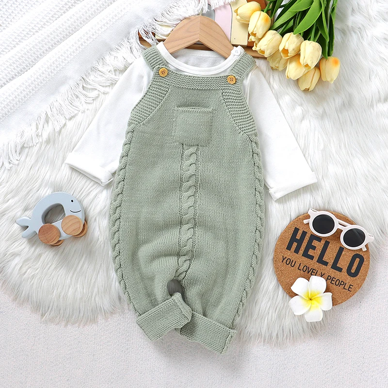 Newborn Baby Romper Knitted Infant Boy Jumpsuit Sleeveless Autumn Toddler Kid Sling Clothing Fashion Solid Pocket 0-18M Overalls