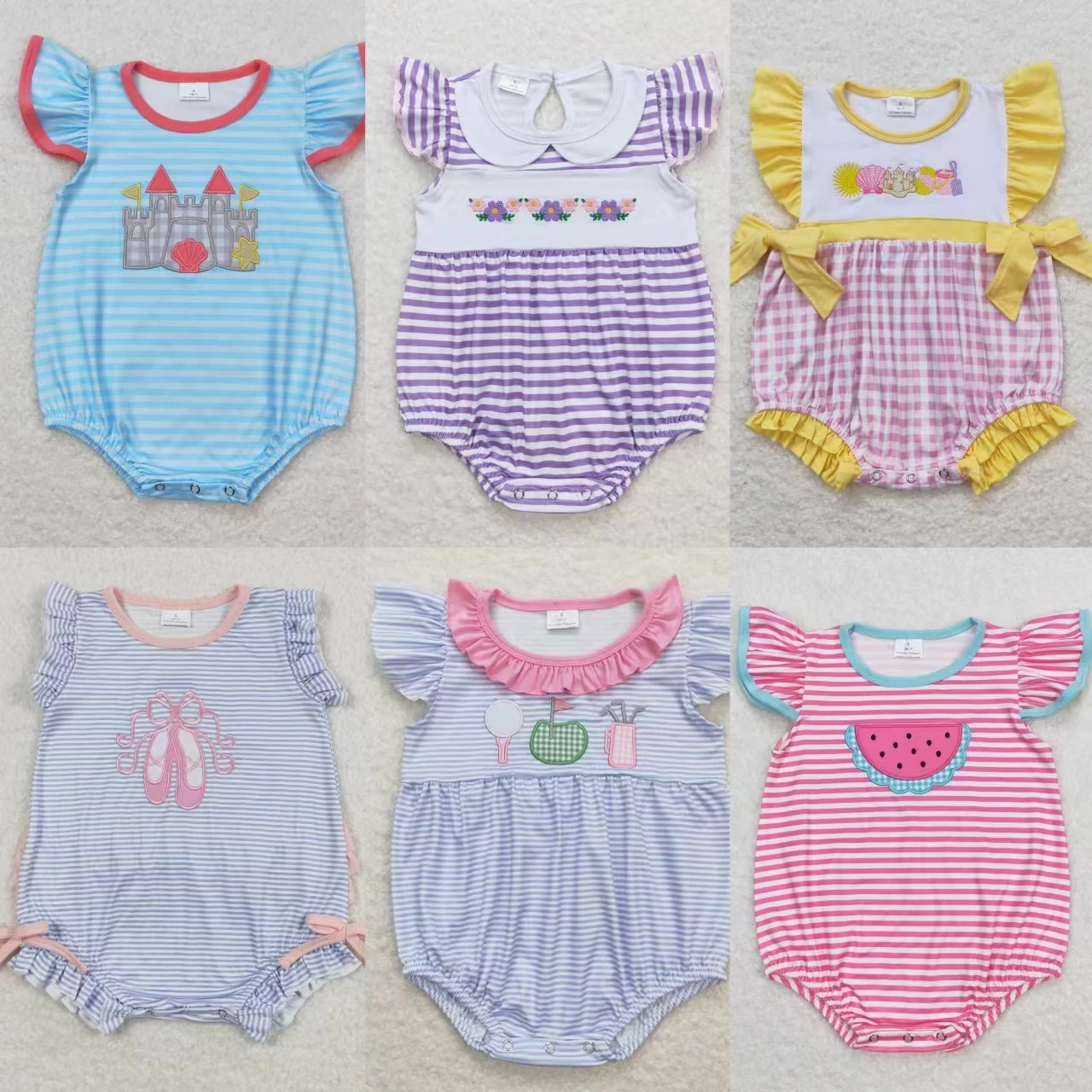 Wholesale Summer Newborn Embroidery Romper Baby Girl Flower Stripes Jumpsuit Kids Toddler Watermelon Ball One-piece Clothing