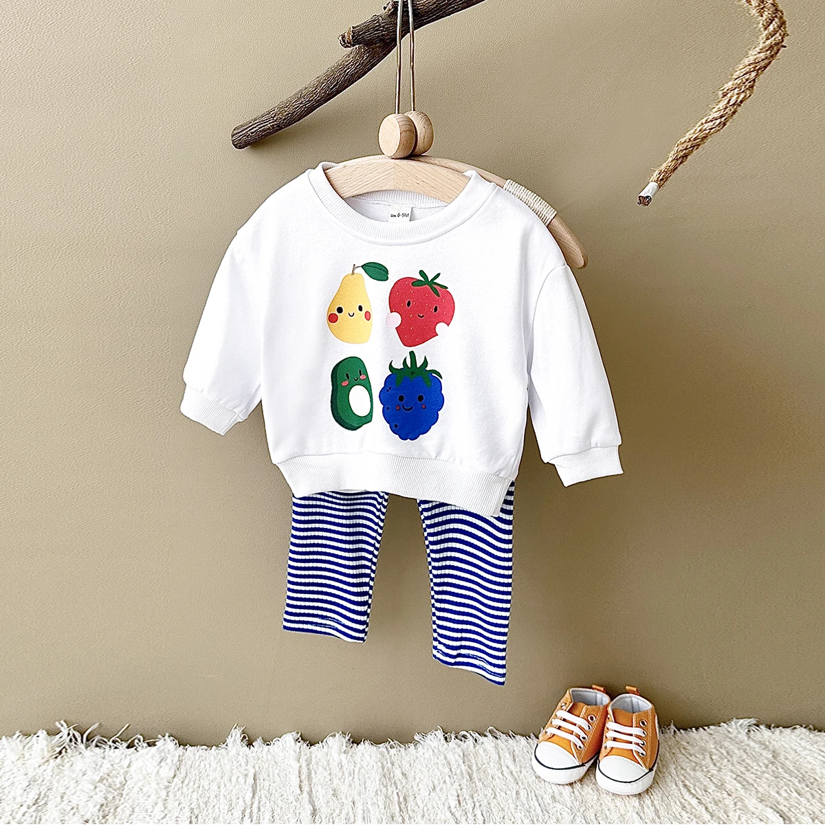Toddler Baby Boy Clothes Infant Outfit Sets Spring Autumn Fruit Print Long Sleeve Sweatshirt Top+Pants Children Clothing 0-3Y