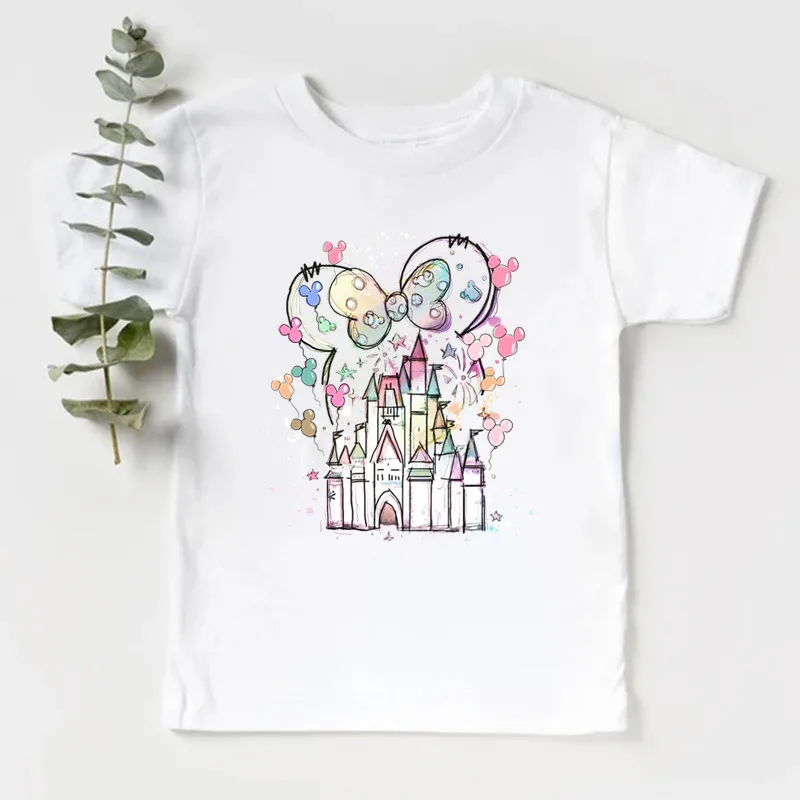 2024 Summer New Fashion Children's Clothing Girl Clothes 2 to 8 Years Disney Castle Print Cotton Short Sleeve Kids Tshirt