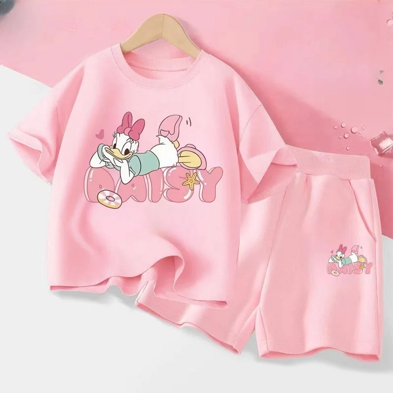 Summer Baby Girl Boy Clothes Set Children Disney Daisy Printing T-shirt and Short Two Pieces Suit Kid Shorts Sleeve Tracksuit