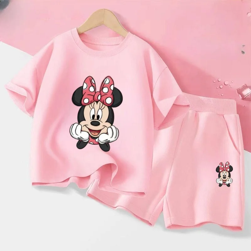 Autumn Baby Girl Boy Clothes Set Children Disney Minnie Printing Sweatshirt Top and Pants Bottom Two Piece Suit Kid Tracksuit