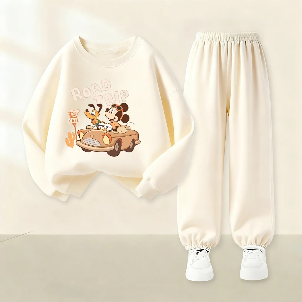 Disney Cartoon Sweatshirt Set For Boy Clothes Autumn Loose Casual Long Sleeve Suit Tracksuits Print Mickey Children's 2piece/set