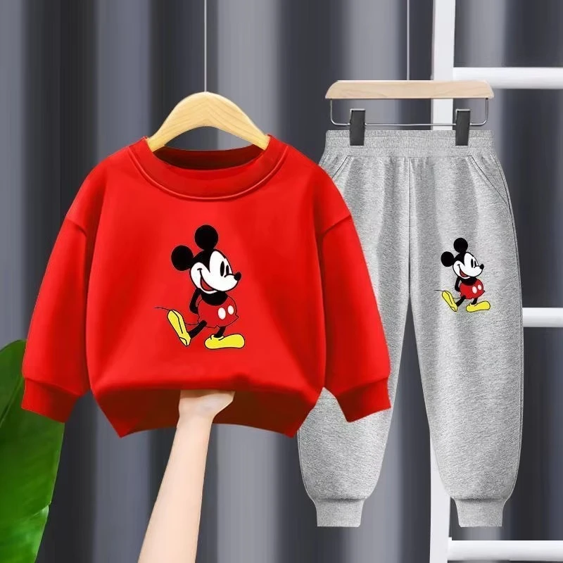 Disney Autumn New Children's Clothing Sets Cute Mickey Print Boys Sweatshirt and Sweatpant Two Piece Suit Girls Tracksuits