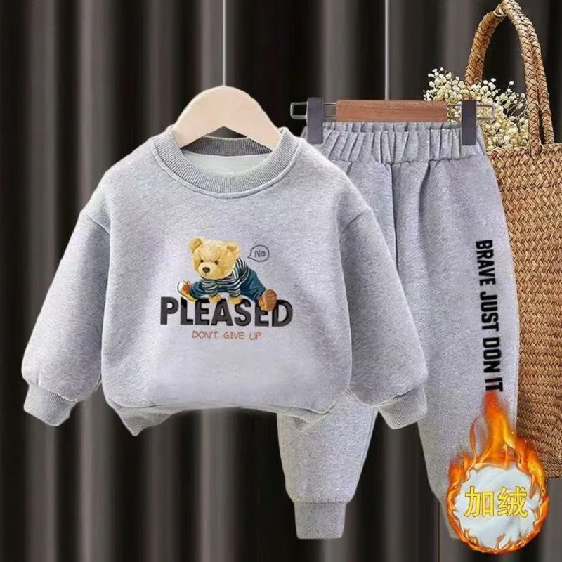 Winter Baby Girl Boy Clothes Set Children Bear Printing Long-Sleeved Top and Pants Bottom Two Piece Suit Kid Plush Warm Tracksui