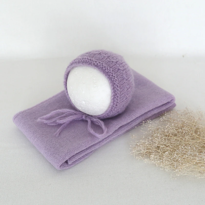 Soft Stretch Knit Wraps Newborn Photography Prop Outfit Baby Mohair Wrap And Crochet Bonnet Sets Photo Shoot Prop
