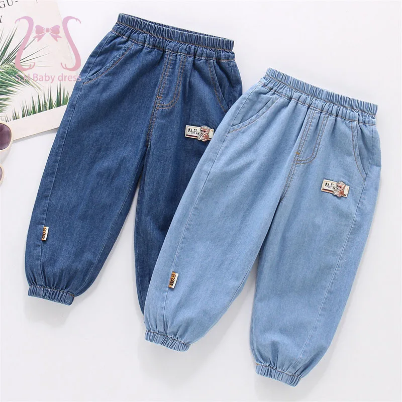 Summer Fashion Baby Girl Boy Jeans Bear Mark Trousures Children Cotton Clothing 1-6 Y Kids Costumn Toddler Comfortable Clothes