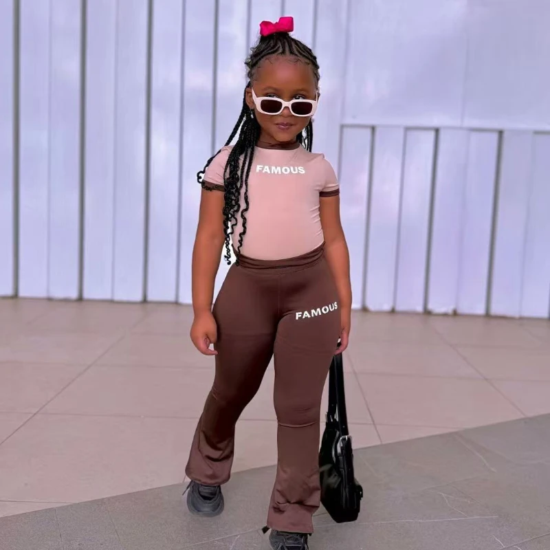 1-8Years Kids Girls Clothes 2pcs/set Short Sleeve T-shirt+Flared Pants Designer Toddler Girl Summer Clothing Suits Baby Outfits