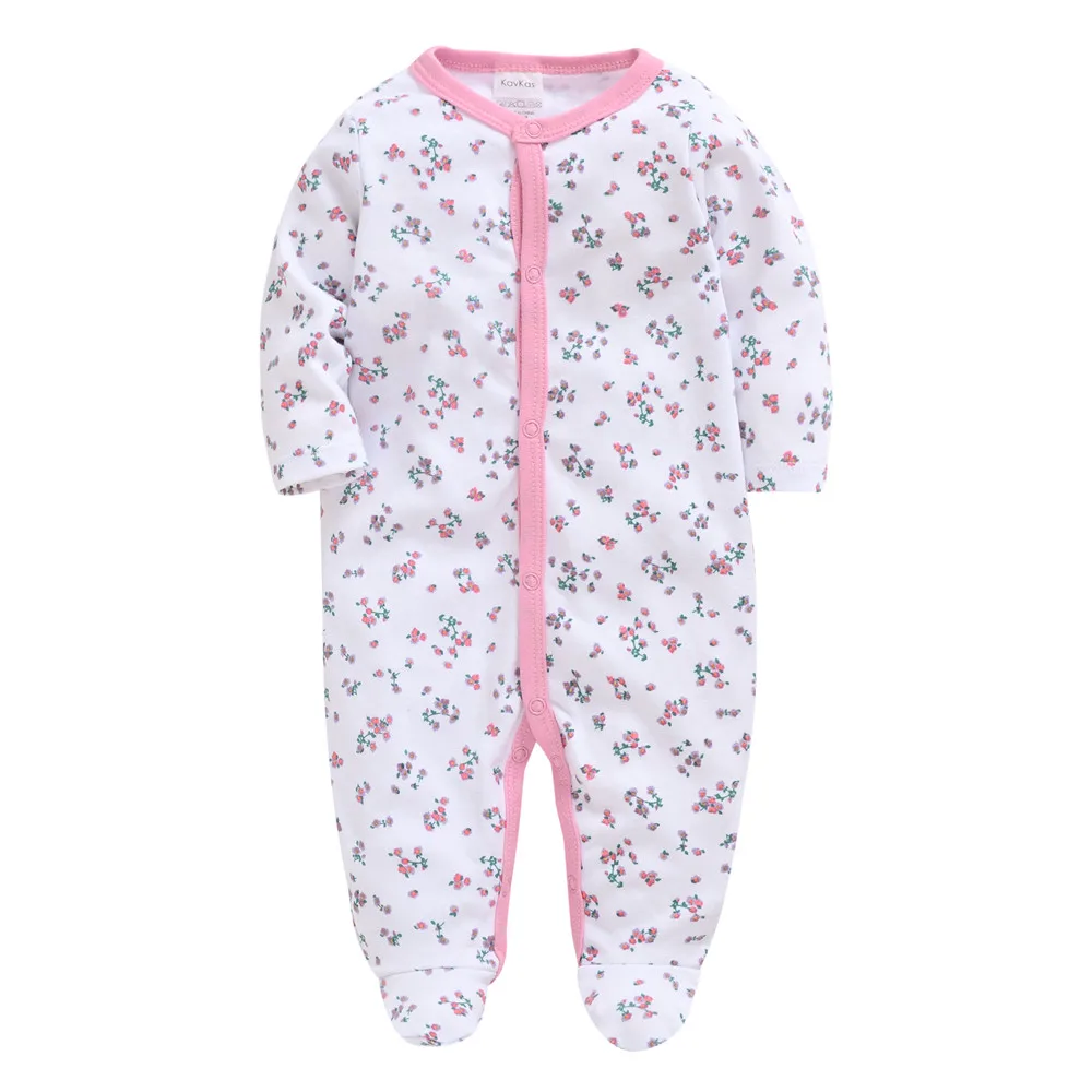 Kavkas Newborn Baby Girls Rompers 100% Cotton Long Sleeve 0-12 Months Cartoon Print Flower baby Clothing