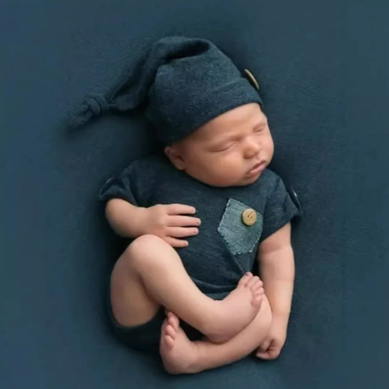 2Pcs/set Newborn Photography Outfit Clothing Studio Baby Photo Props Accessories Hat Overalls Outfits