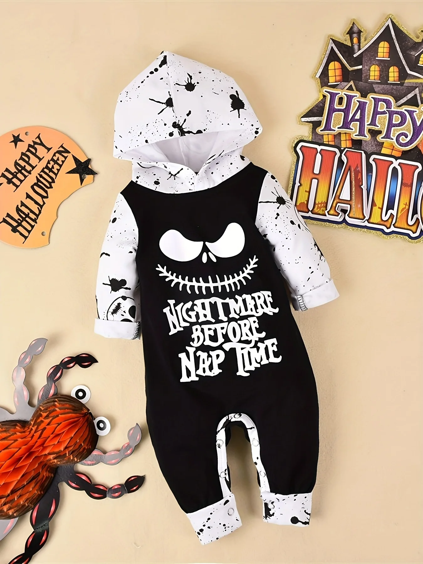 Halloween Newborn Baby Boy Clothes Infant Baby Boy Romper Long-Sleeve Hooded Cotton Letter Print Nightmare Jumpsuit