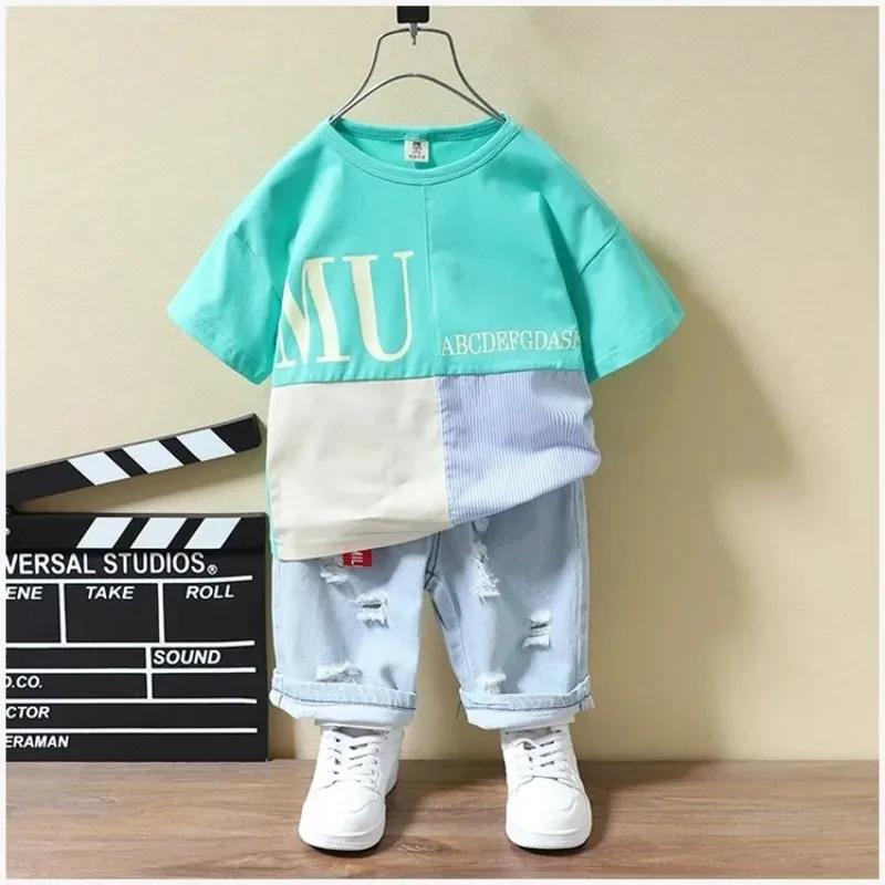 Children's clothing Summer Baby Boys Short Sleeved Top t-Shirt + Denim Short Pant Kids 2-Piece Outfits Clothing For 2-7 Years