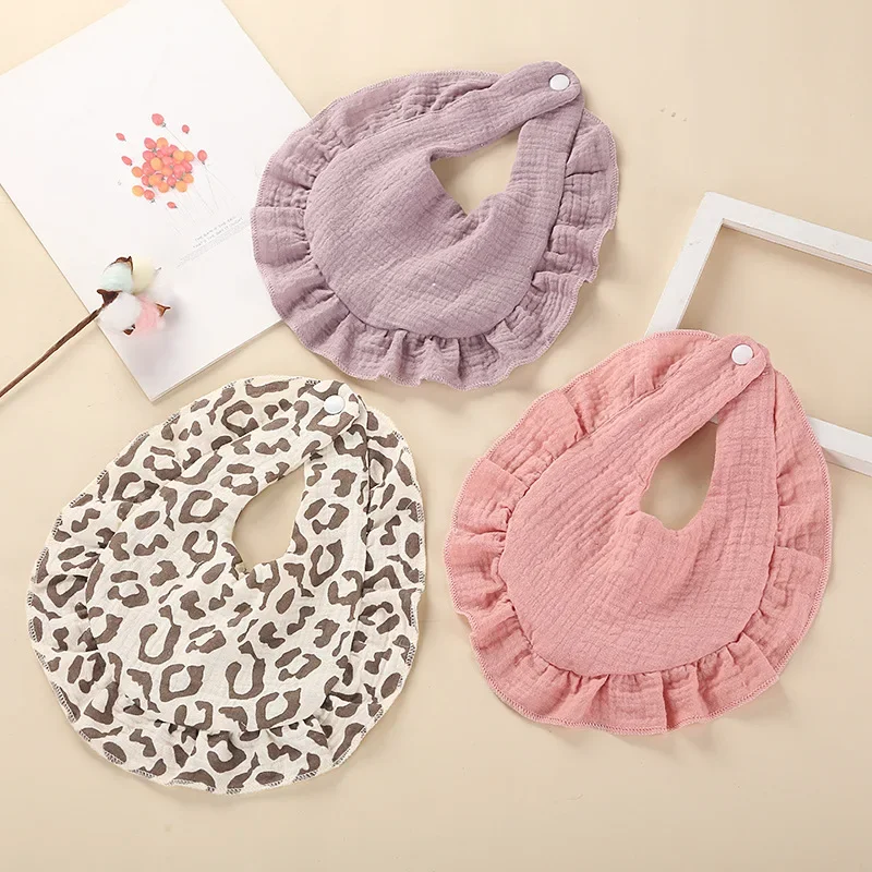 INS Hot Baby Bibs Kawaii Newborn Girls Cotton Muslin Saliva Towel Flowers Cherry Leopard Lace Babies Accessories Children Stuff  Read more