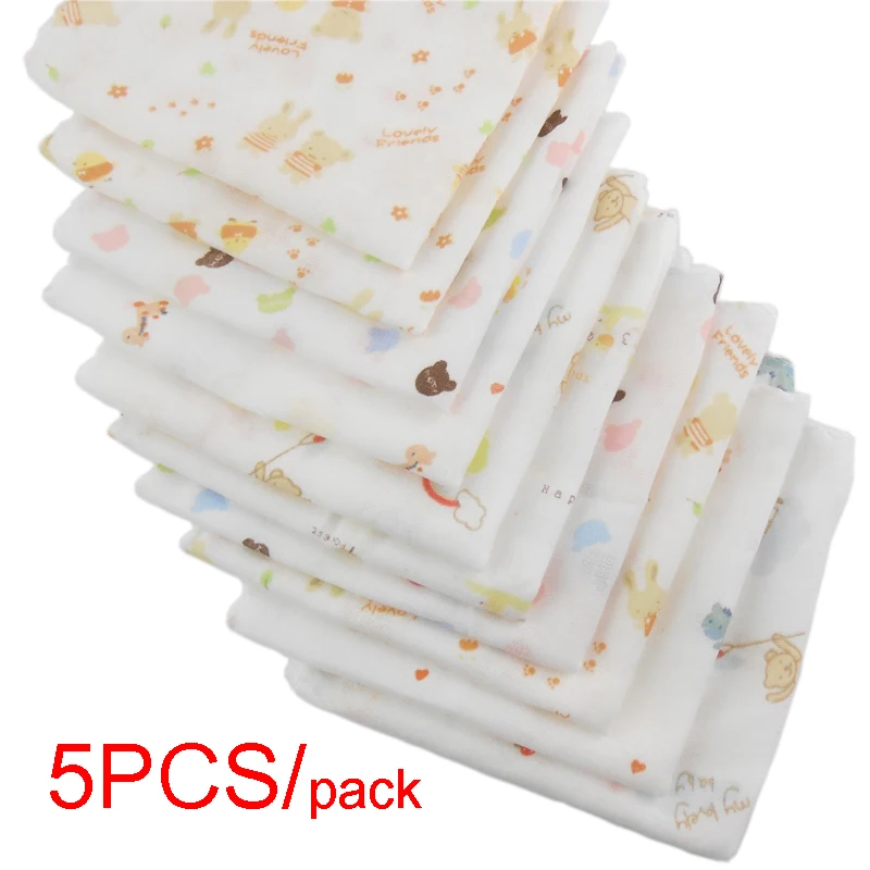 5pcs Pack 31*31cm 100% Cotton Gauze Cartoon Newborn Infant Baby Face Hand Bathing Towel Bibs Feeding Handkerchief Square Towels  Read more