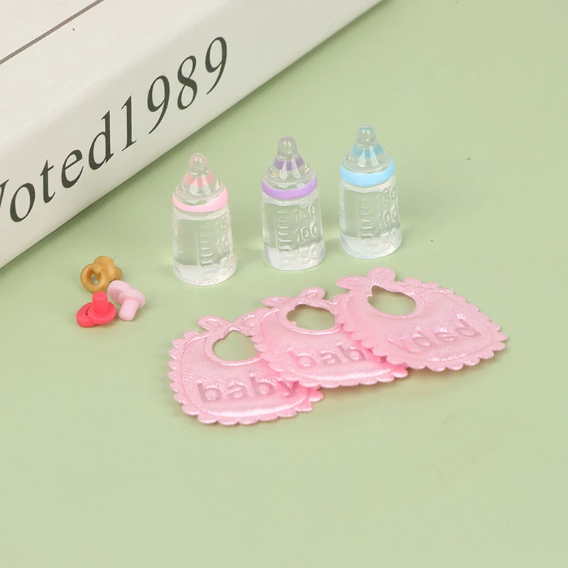 1:12 Dolls House Miniature Baby Bottles Pacifier Bibs Set Nursery Accessory Gift