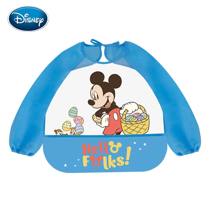 Disney Cute Baby Bibs Waterproof Full Sleeve Cartoon Kids Apron Smock Bib Burp Eat Toddler Feeding Bibs Baberos Bavoir Clothing