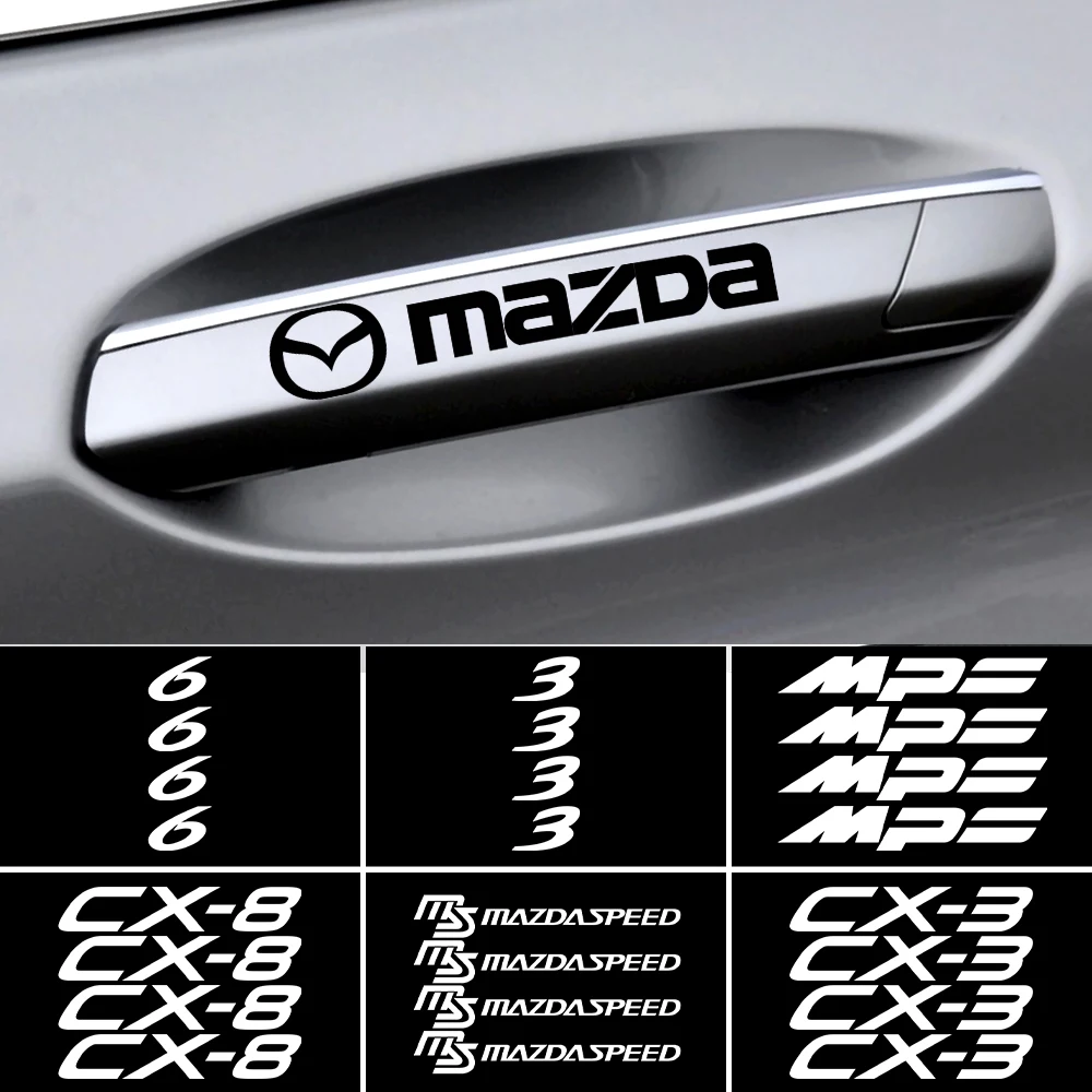 4pcs Car Door Handle Mirror Wiper Decals Car Emblem Trim Stickers For Mazda Axela Atenza CX-3 CX-8 MAZDA SPEED Demio MPS 3 4 5 6