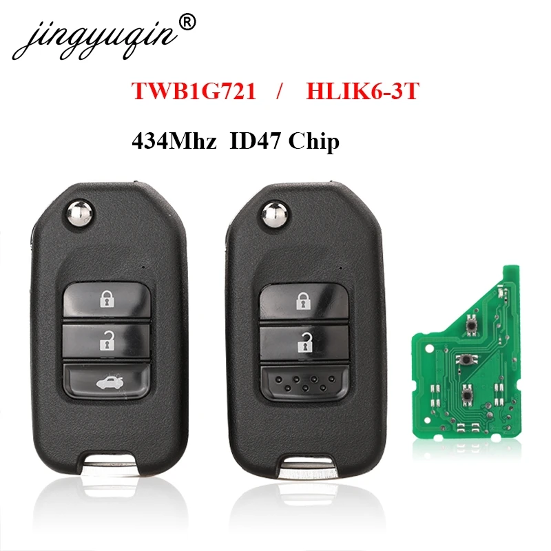 jingyuqin 2/3BTN Remote Key for Honda Civic Accord City CR-V Jazz XR-V Vezel HR-V FRV Spirior JADE 433MHz HLIK6-3T / TWB1G721