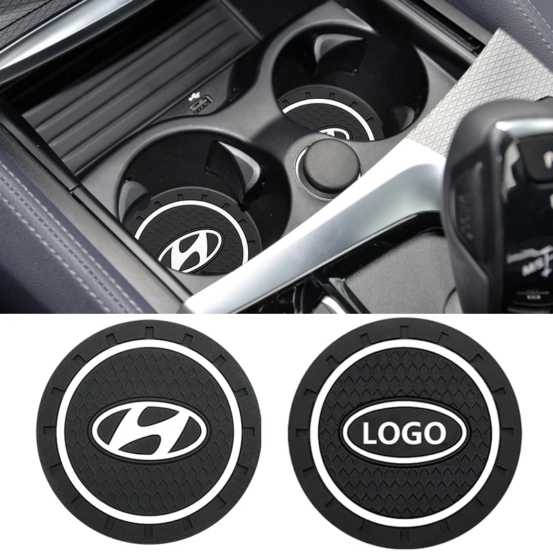 2Pcs PVC Car Coasters Water Cup Slots Non-Slip Mat Pad For Hyundai BMW Audi MINI Kia VW Ford Mazda Lexus Accessoreis
