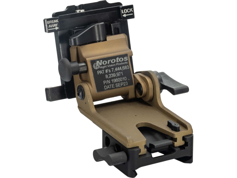 Norotos LoSto Helmet Mount Push Button w/ Breakaway PVS-15/18/21/31 Coyote Brown One Size 1960010CB-2b. This innovative helmet mount manufactured by the experts at Norotos is made with an incredibly durable lightweight forged aluminum material that...  Read more