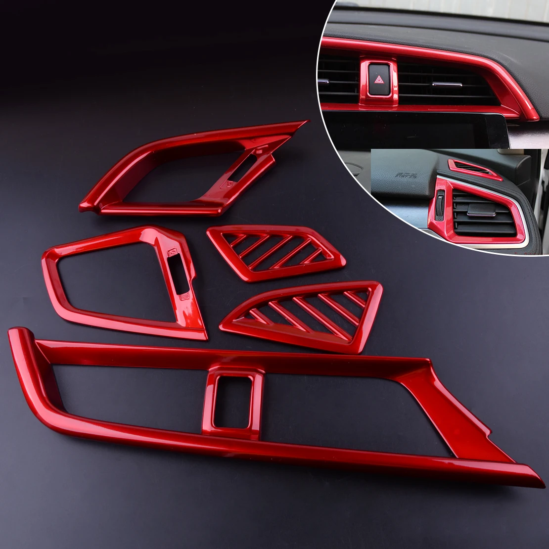 beler 5Pcs Red Central Control Outlet Air Vent Cover Trim ABS Left Hand Drive Only Fit for Honda Civic 10th 2016 2017 2018 2019