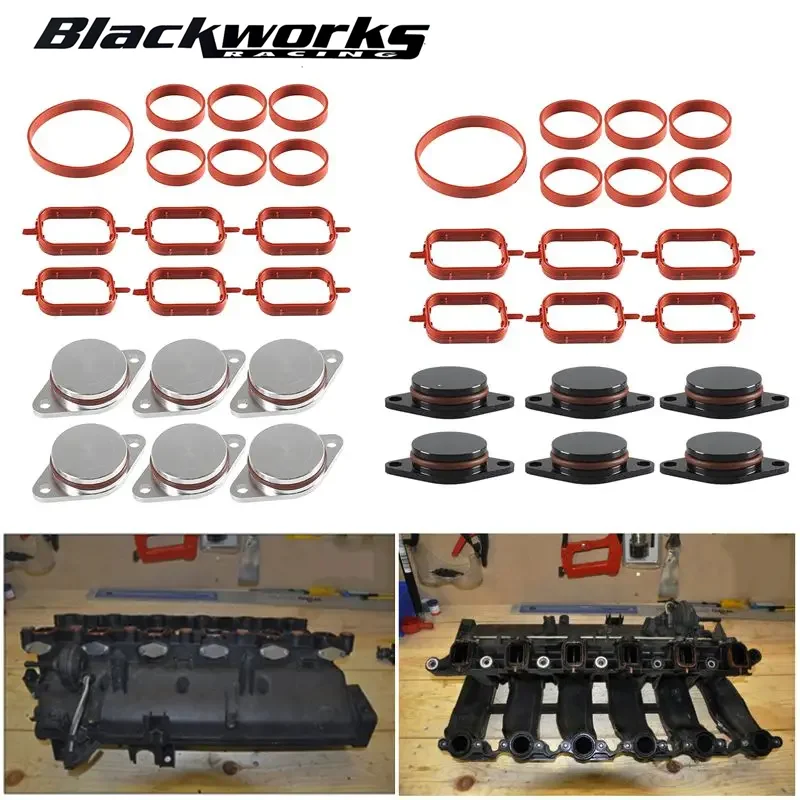 6PCS 22mm/33mm Swirl Flap Blanking Plates with Intake Manifold Gasket Seal For BMW M47 M57 E39 E87 E46 E90 E39 E60 X3 6 Cylinder