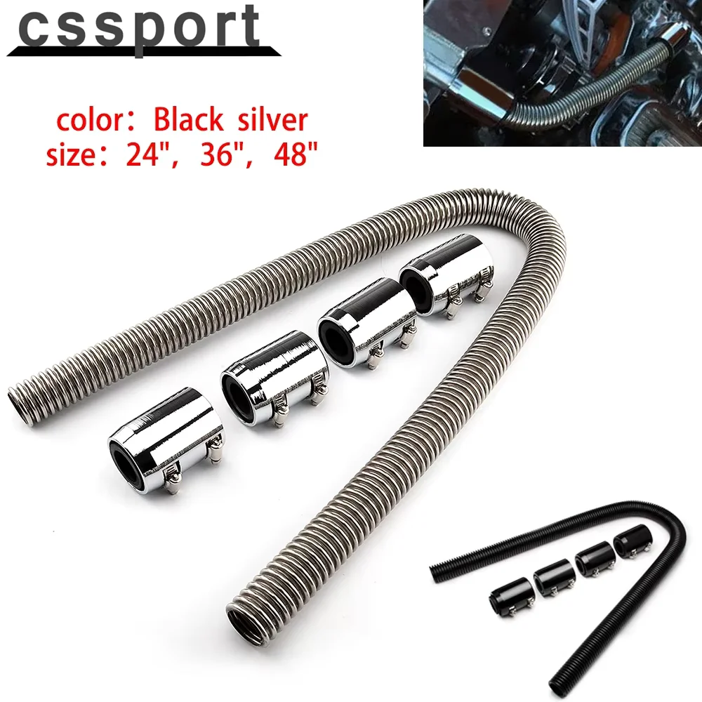 Universal 24" 36" 48" Car Engine Cooling Stainless Steel Radiator Hose Kit and Stainless Steel With Chrome-Plated Cap Clamp