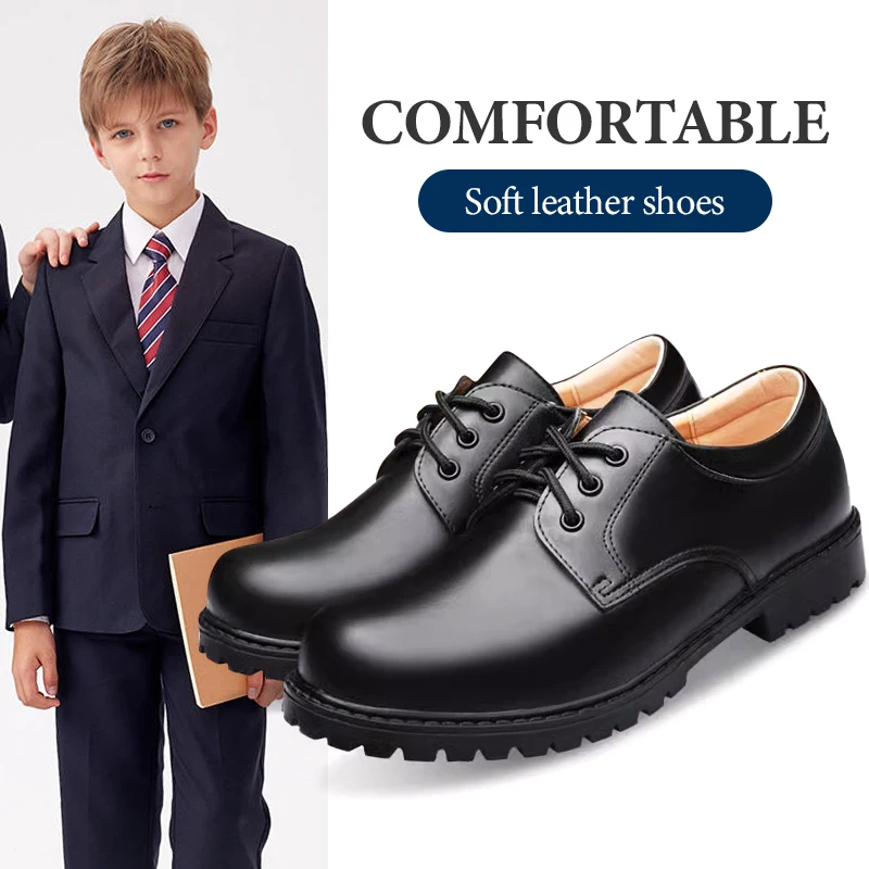 Soft Bottom School Shoes for Boys Middle School Student British Black. Performance Shoes Comfortable Barefoot Kids Boy Mother