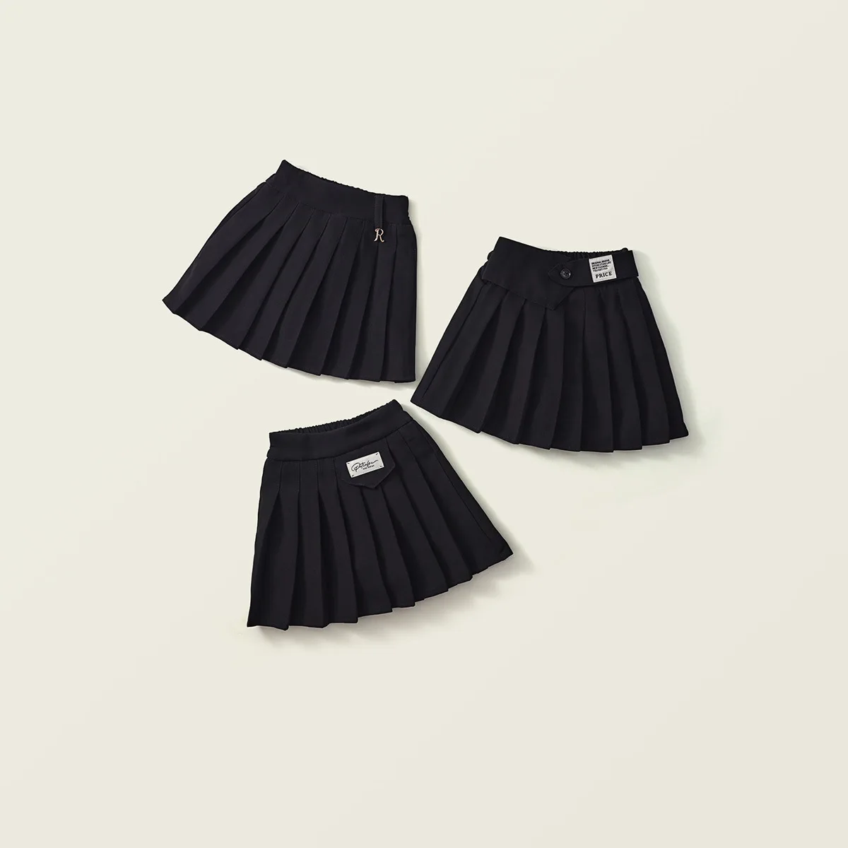 Children Summer Skirts With Shorts Kids A Line High Waist Mini Dress Girls Black White Red Pleated Skirt Student Uniform Skirts