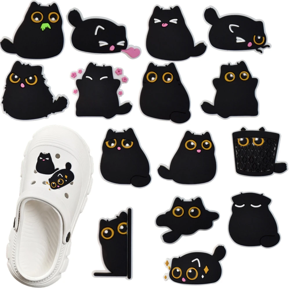 NEW Cartoon Shoe Charm Cute Black Cat Series PVC shoe Accessories DIY Detachable Waterproof PVC Shoe Decorations Kids Giftsts