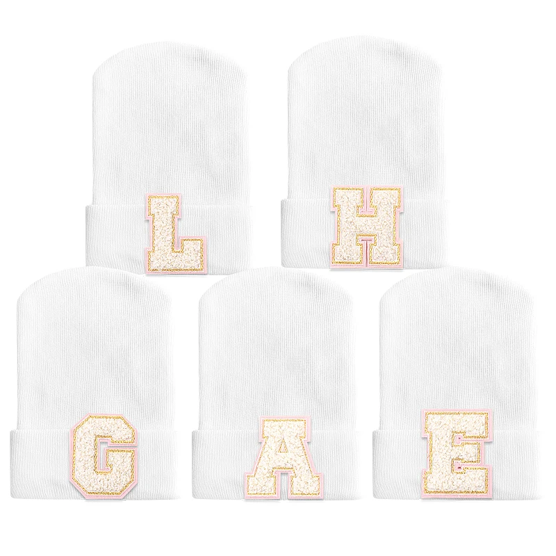 0-3 Month Newborn Baby Girls Pink Fabric Patch Letters Beanie Boys Kids white Hospital hat New born baby photography props stuff