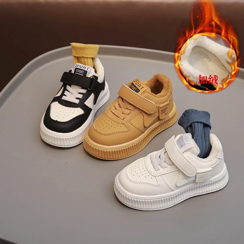 Boys Padded Sneakers Size 22-31 White Thickened Warm Girls Toddler Cotton Shoes Yellow Soft Non-slip Children's Board Shoes