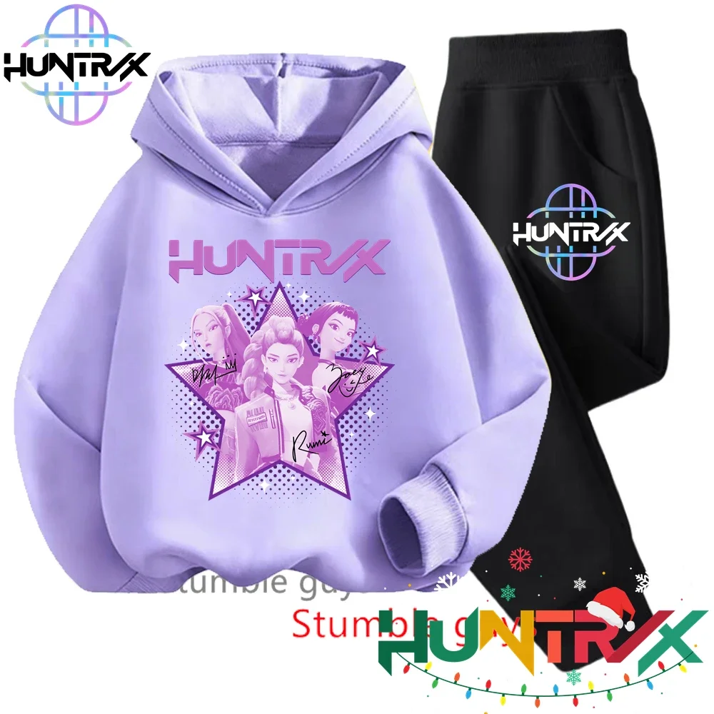 Cartoon Kpop Demon Hunters Boys Sweatshirt Set Kids Girls Autumn Purple Soft Warm Trendy Anime Print Cozy 2-Piece Wear​