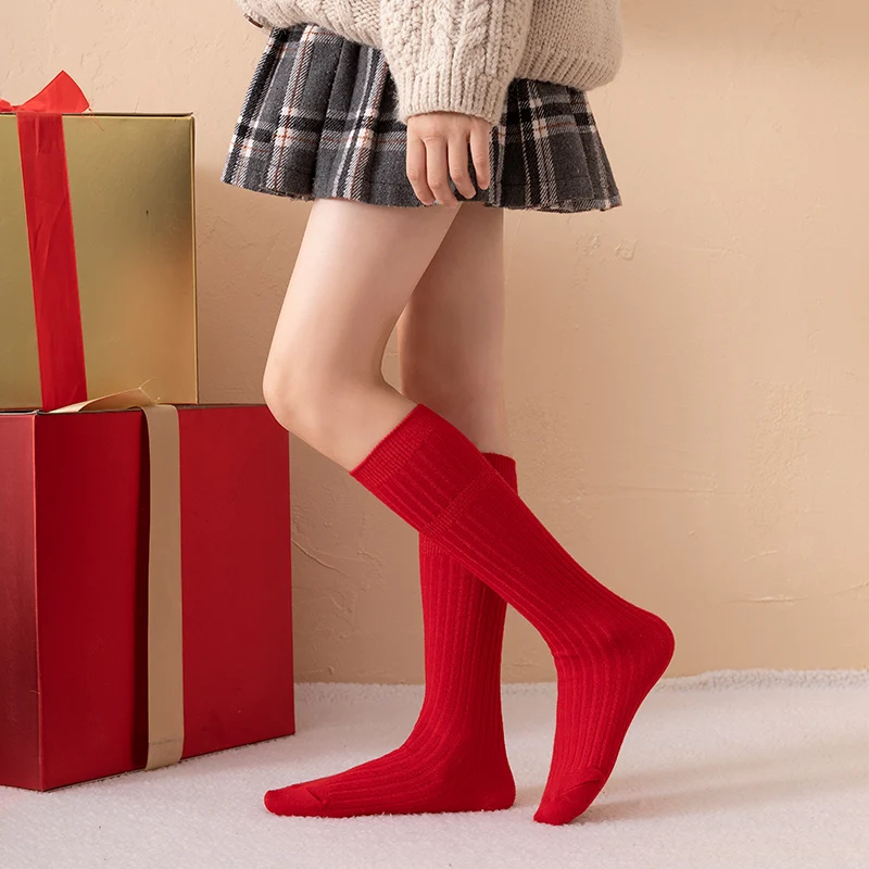 Three pairs of red festive New Year's mid-calf socks for boys and girls, comfortable to the skin, suitable for spring and autumn