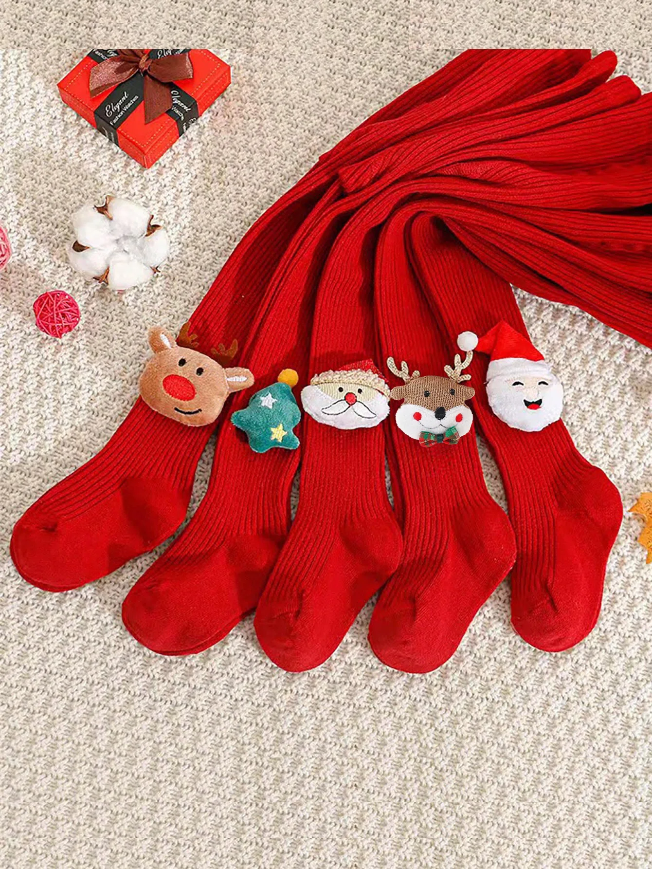 1 Pair of Cartoon-Decorated Red Leggings for Kids, Soft and Non-Slip, Suitable for Girls Aged 0 to 12 to Wear during Christmas