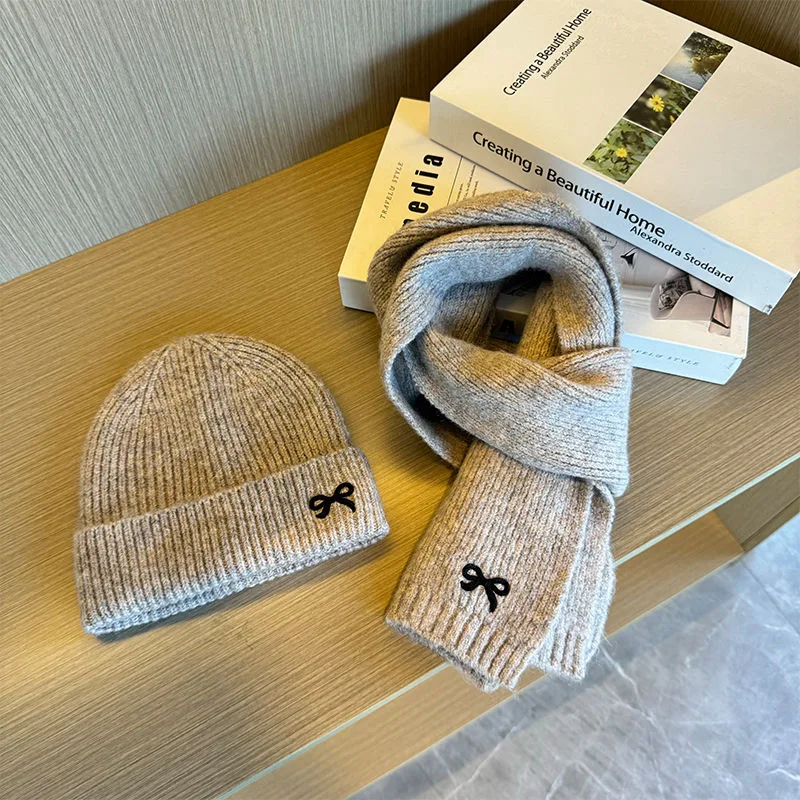 Children's hat scarf two-piece set encola red baby embroidered bow earmuff solid color bib warm fashion