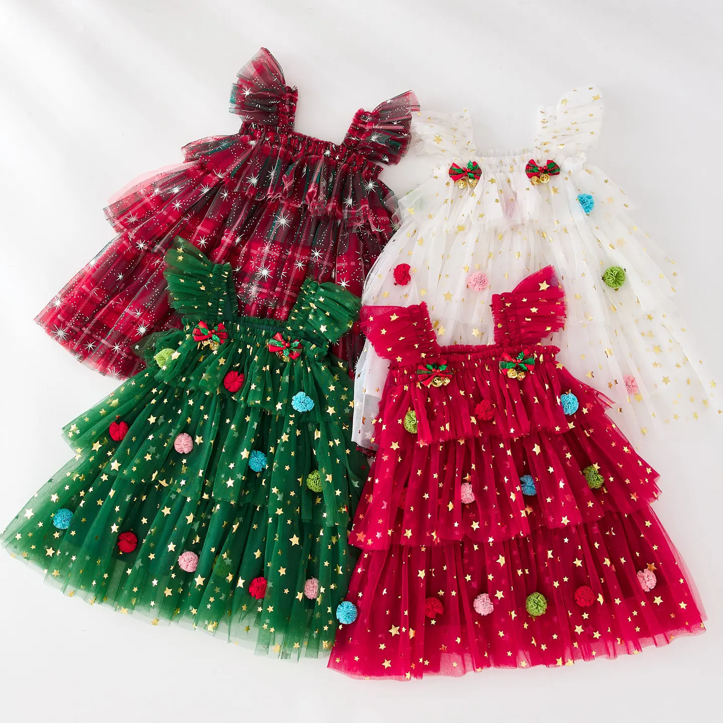 Baby Girl Christmas Tutu Green Dress Flying Sleeve 1-6Y Children Kawai Clothes Princess Dress Kids Carnival Christmas Dress Girl