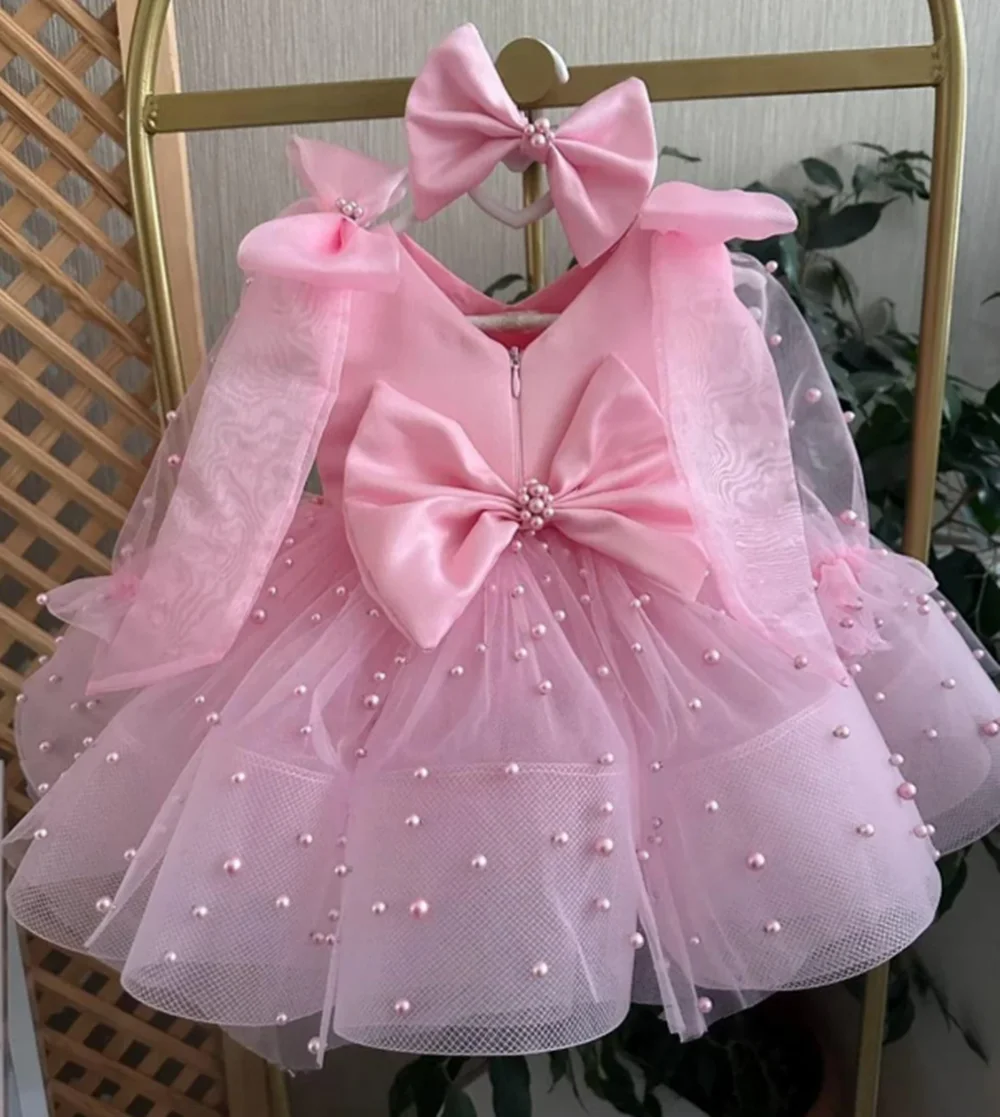 Pink Puffy Tulle Knee-Length Baby Girl Fairy Dress with Big Bow  Read more