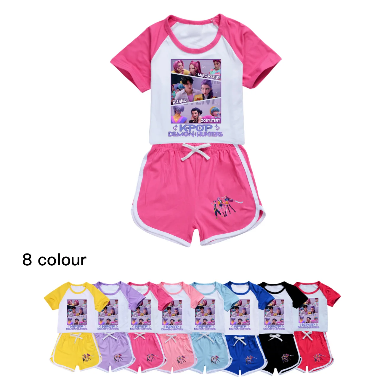 KPop Demon Hunters T Shirt Kids Cartoon T-shirt Shorts 2pcs Sets Baby Girls Summer Clothing Set Children Short Sleeve Sportsuits