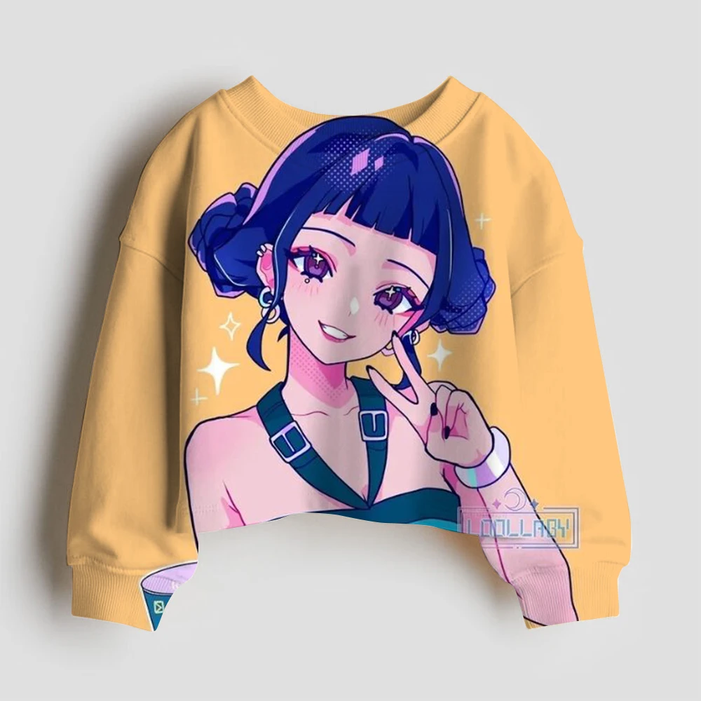 KPop Demon Hunters Sweatshirt Huntrix Anime Cartoon Spring Autumn Clothes Tie-dye Versatile Long Sleeve Girls Trend Leisure Tops